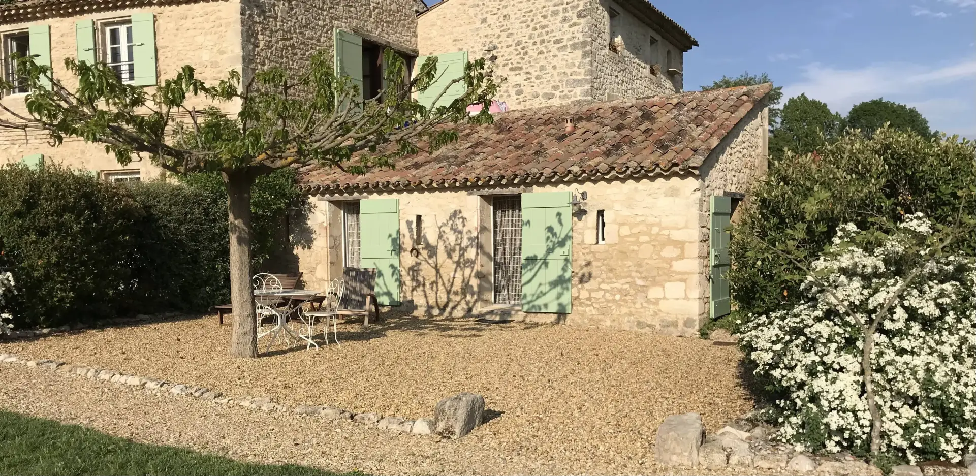 Le Mas de La Baou est notre résidence principale, nous vivons au rez-de-chaussée du grand bâtiment, dans l'ancienne bergerie, et nous avons aménagé, dans les autres bâtiments, 3 gîtes confortables, pour recevoir des familles. Chacun a son accès privé et son intimité.